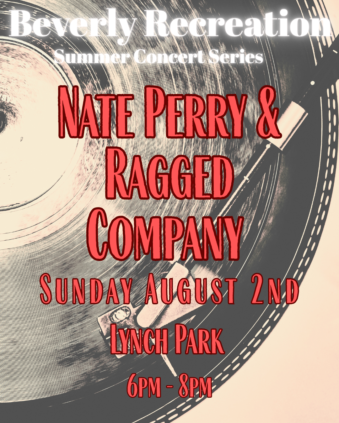 Summer Concert Series: Nate Perry & Ragged Co. Sunday, August 2, 2026 6:00 PM 8:00 PM Lynch Park 55 Ober Street Beverly, MA, 01915 (map) Google Calendar ICS